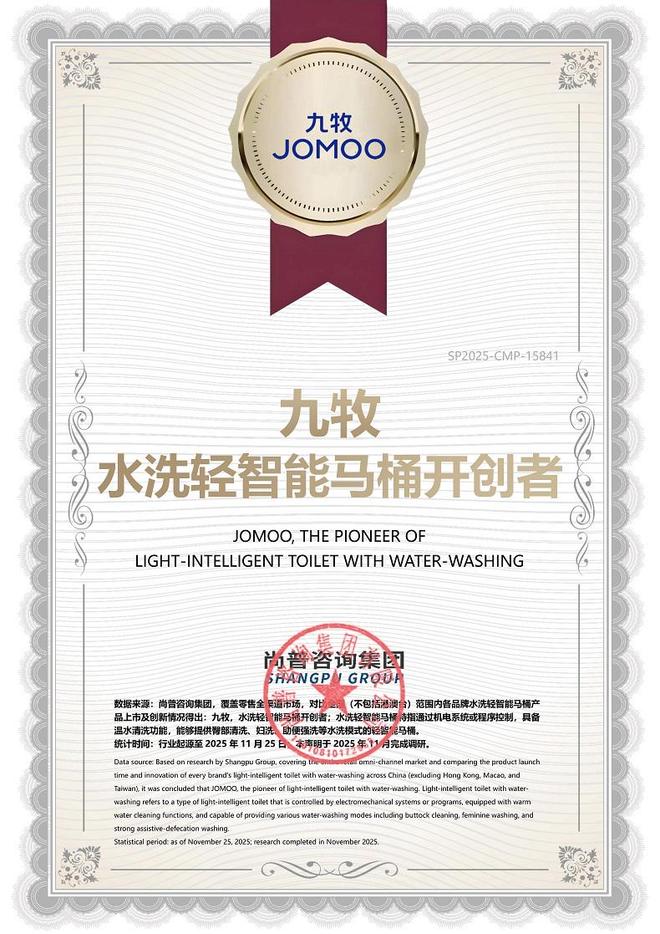 近期,尚普咨询集团向九牧集团有限公司下的水洗轻智能马桶产品(以下简称“九牧”)颁布威望商场位置声明。此次,经过紧密的数据考证,尚普咨询集团承认向九牧颁发重磅商场位置声明书:九牧, 水洗轻智能马桶开创者。这一声明印证了九牧的立异位置。