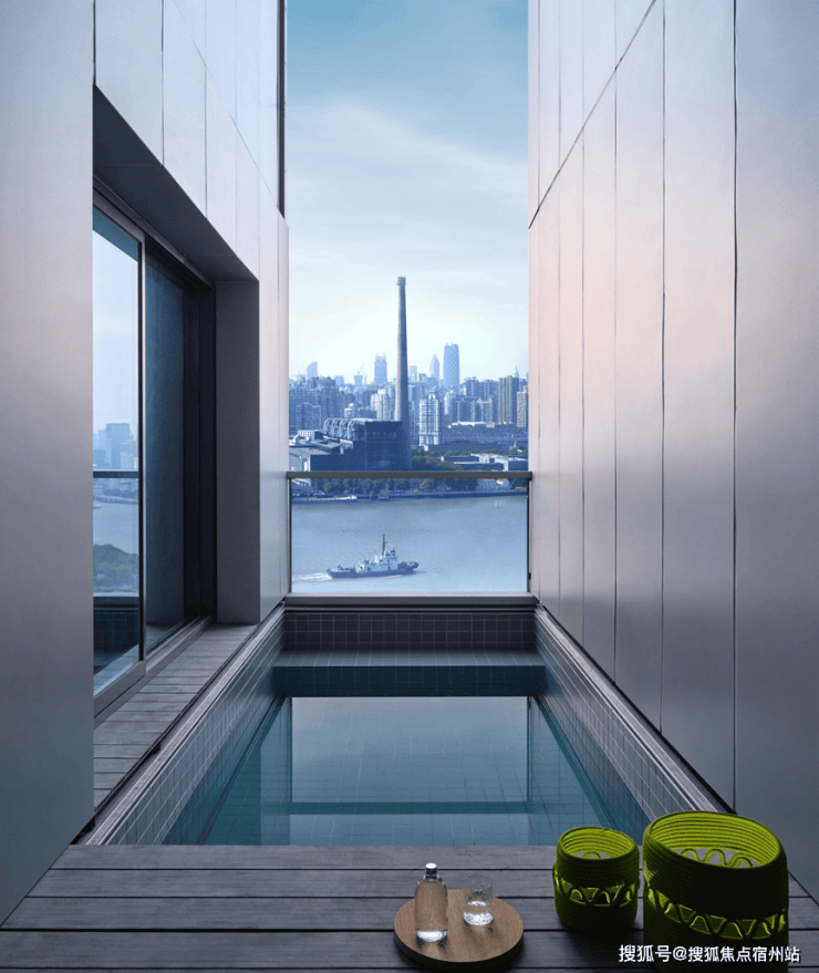 约252㎡中间套则在13.2米瞰江面基础上,奇数层开创性地增加了约6米的进深采光面,利用中间套的双层挑高,打造上海滨江首个空中泳池户型.